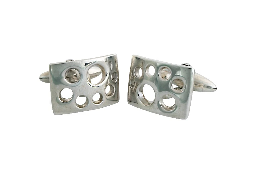 Des plaques rectangulaires légèrement galbées, percées de cercles de tailles variées, composent un graphisme épuré et dynamique. Ces boutons de manchette arc ii jouent sur le vide et le volume pour créer un rythme moderne au poignet. Une touche contemporaine pour célébrations, rendez-vous marquants et instants à souligner avec une note de caractère discret.