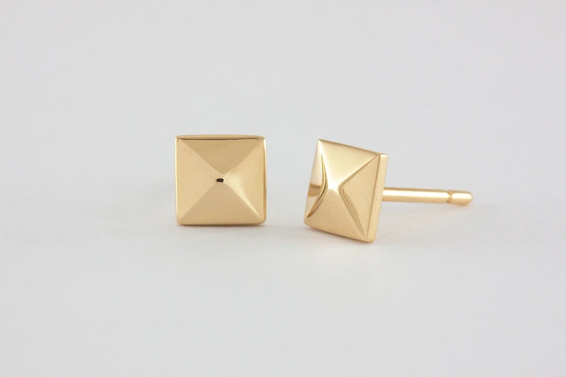 Profil carré avec relief pyramidion, lignes nettes et surface régulière qui dessinent un graphisme épuré. Ces puces carrées soulignent une esthétique minimaliste, proche de l’architecture, facile à associer à une tenue habillée. Fait main, chaque paire exprime une rigueur contemporaine et un éclat mesuré, idéale pour célébrations, rendez‑vous marquants ou jalons personnels.